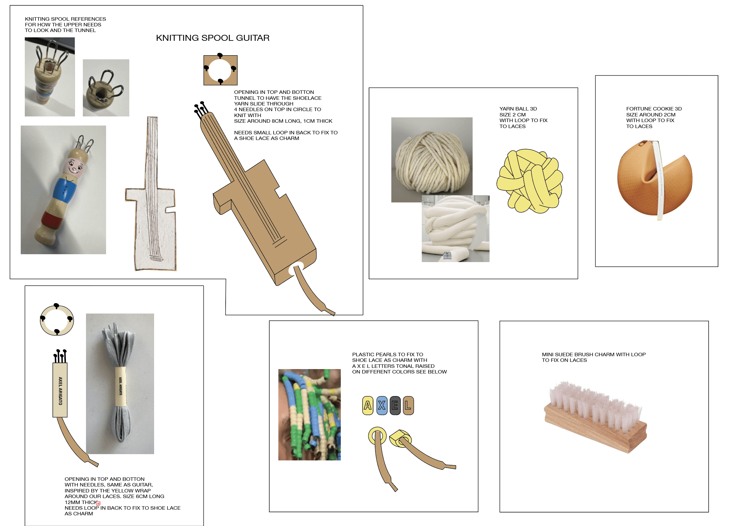 The lace charms were designed as part of Axel Arigato's Eris sneaker launch strategy, allowing customers to personalize their shoes with unexpected motifs. Rather than typical sneaker accessories, the charms featured distinctive objects: A guitar, brush, yarn ball, and other unconventional elements that let wearers express individual style.
