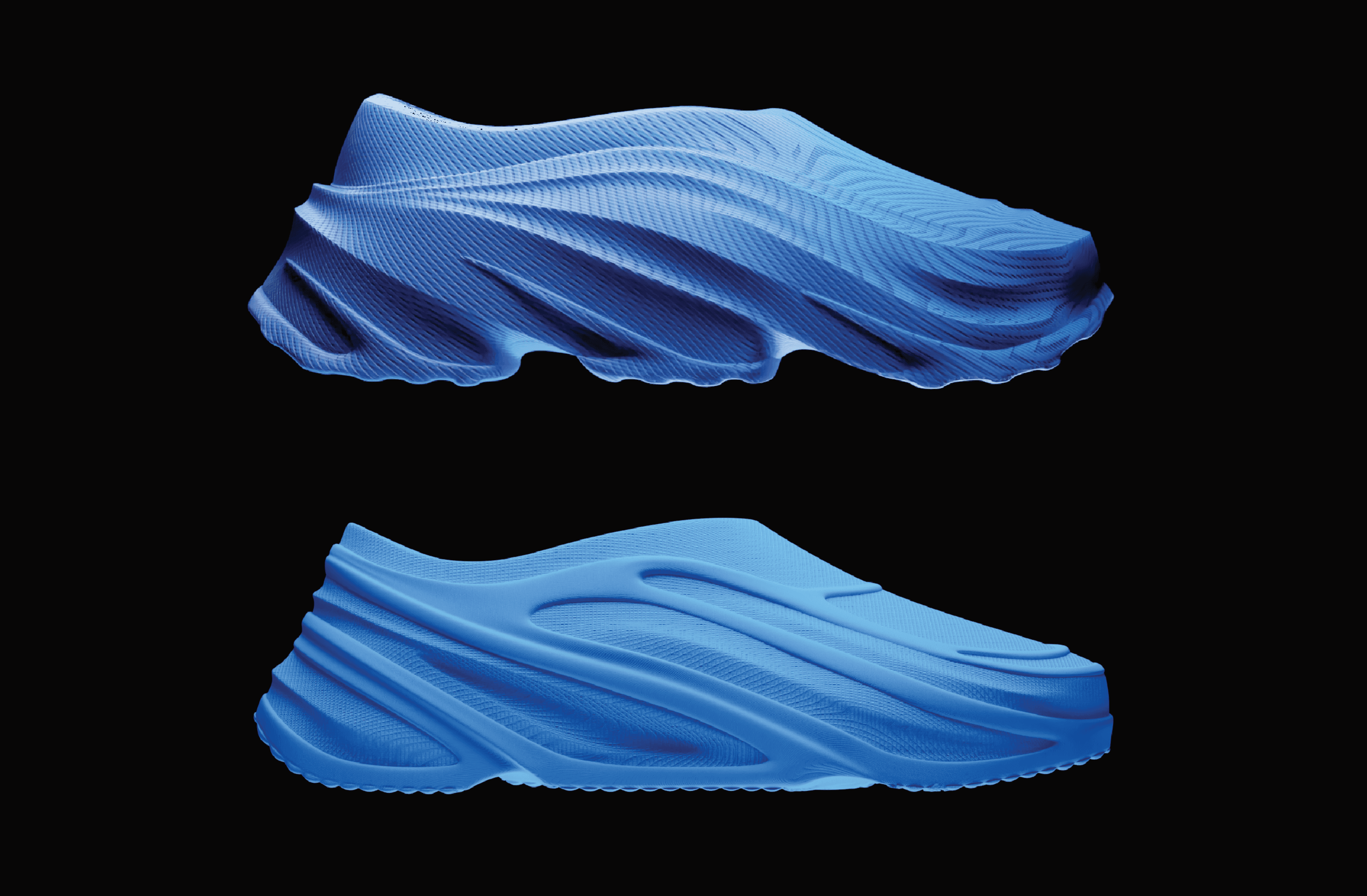 Midway through development, Zellerfeld introduced the ability to print with two distinct textures: A closed surface and an open mesh. This capability fundamentally changed what was possible aesthetically. Rather than compromising my original vision, I redesigned sections of the shoe to leverage this new capability, using the contrast between solid and mesh to strengthen the light/shadow concept and create more visual contrast.